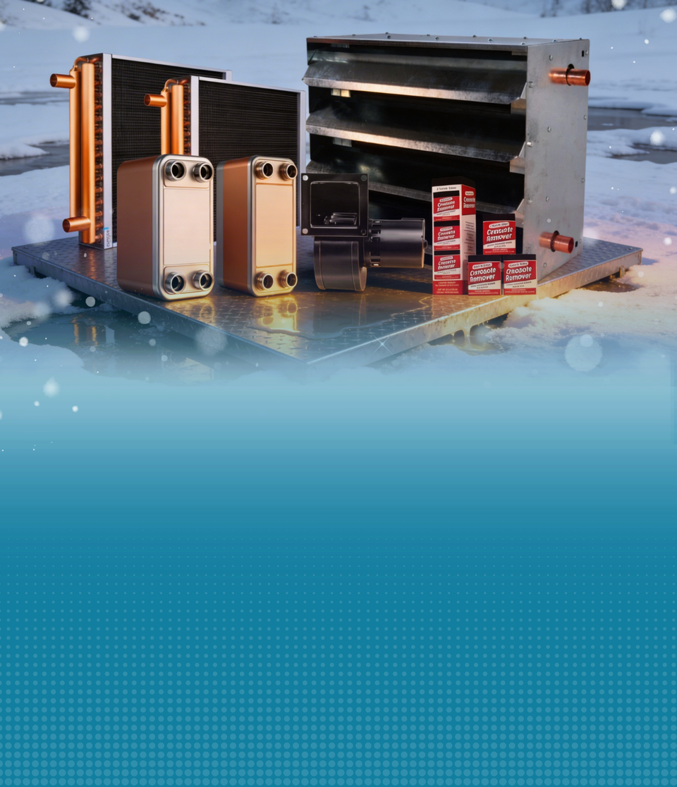 Installation parts used for a first-time installation are heat exchangers, pumps, Insulated Underground PEX piping, and Installation Parts Kits.