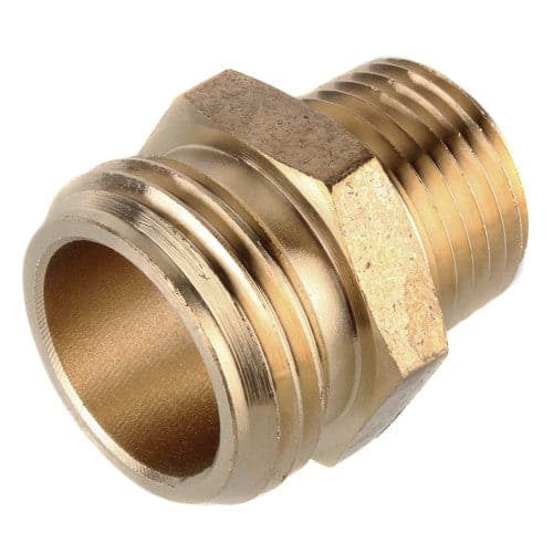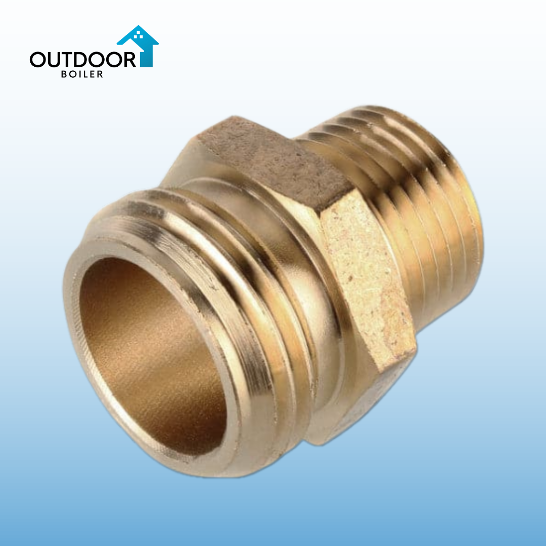 The male hose adapter is a component of the back of furnace kit which is connected to the ball valve on the furnace drain. This adapter enables connecting a hose to the drain so that while draining the boiler, the water can be diverted elsewhere.